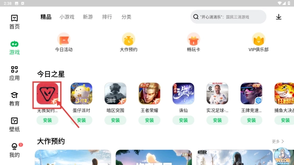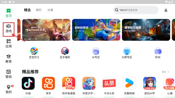 1、打开应用商店,点击左侧游戏选项,进入游戏分类页面。