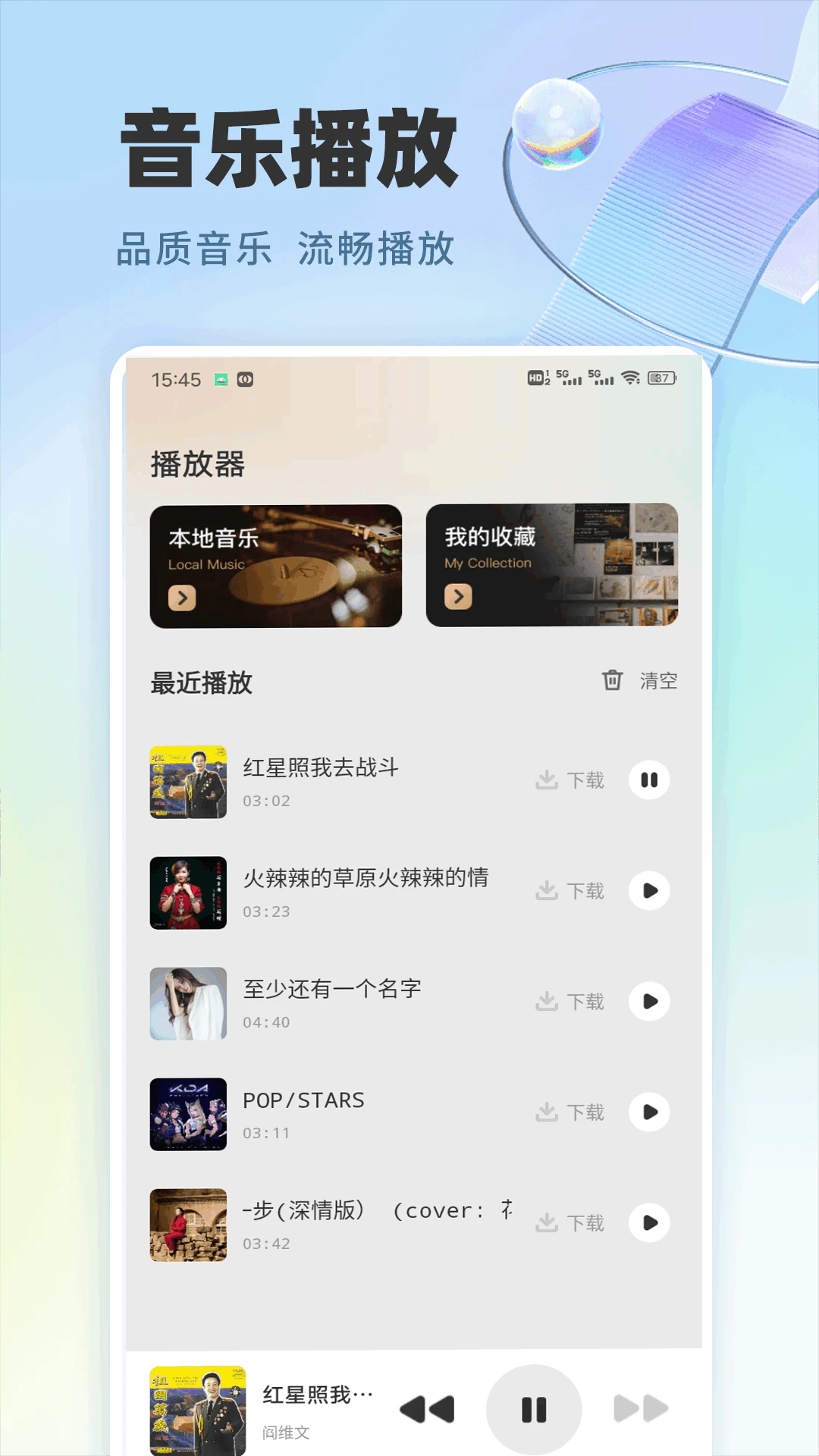 离线下载功能:支持离线下载,用户可以将喜欢的歌曲下载到本地,即使没有网络连接,也能随时随地享受音乐。