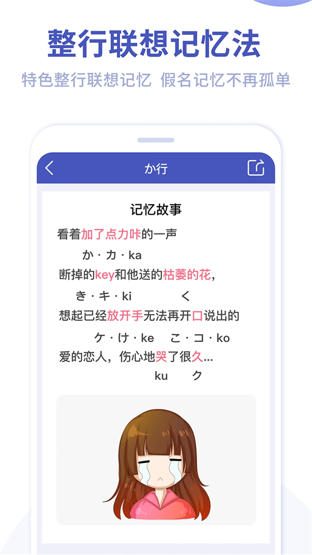 每个假名都配有清晰的发音示范,帮助学习者准确掌握日语发音。