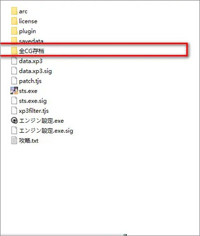 再补充说明一下全cg存档的问题。游戏声称带有全cg存档,但当自己实际进入游戏游玩时却发现没有,该如何解决呢?其实方法很简单,只需自行取出全cg存档,覆盖替换自身的存档,具体方法如下: