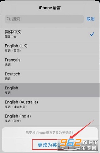 4、默认显示为“English”,点击进入。