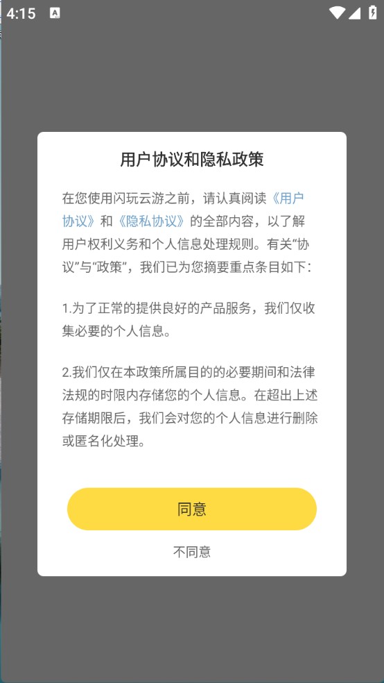 1、首先在本站安装好闪玩云游,查看并同意隐私政策与用户协议。
