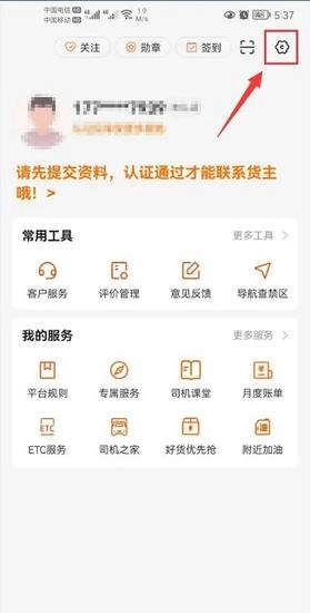 首先我们找到货车帮这个软件,找到右上角的设置图标。
