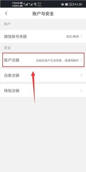 在页面大家可以看到有注销账号的选择,大家可以选择注销