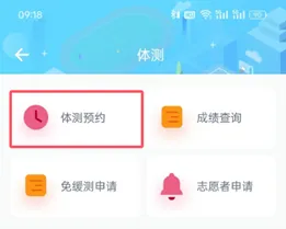 选择“体测预约”,打开右上角“我的预约”可查看成功预约的项目。