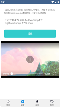 播放流媒体链接,支持http、rtmp、rtsp等多种强大的流媒体协议链接播放。