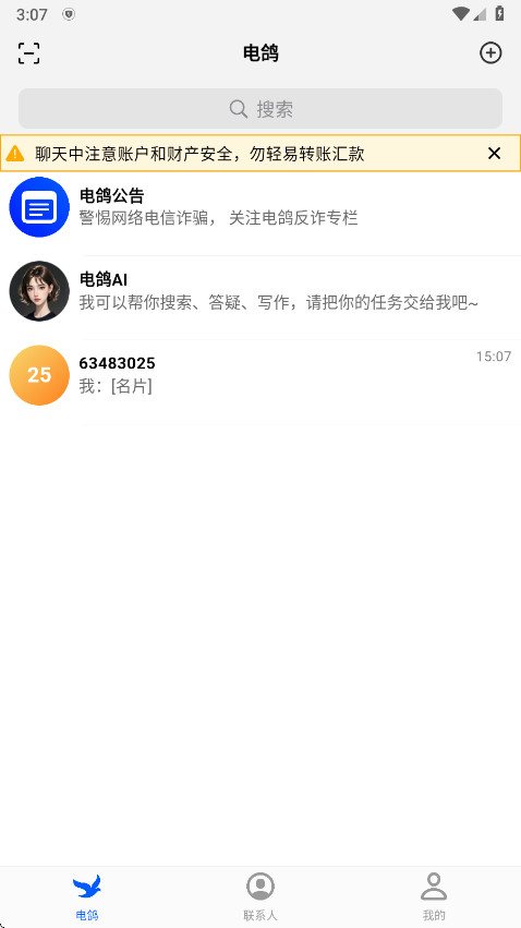 如果对方已经生成了电鸽的个人二维码,可以通过扫描二维码的方式添加好友。点击“扫一扫”功能,扫描对方的二维码即可完成添加。