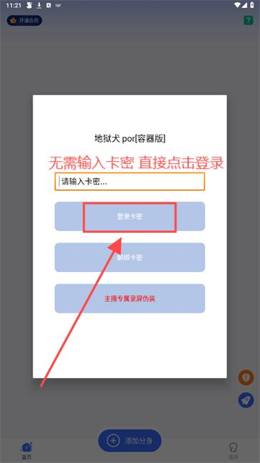 3、无需输入卡密,点击“登录卡密”按钮直接进入;