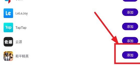 4、添加所需辅助的游戏,如和平精英或其他吃鸡类游戏;