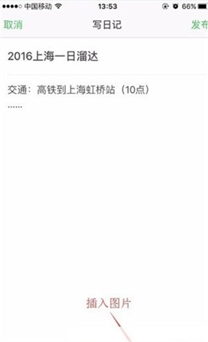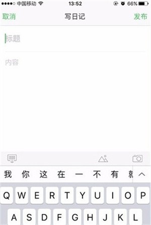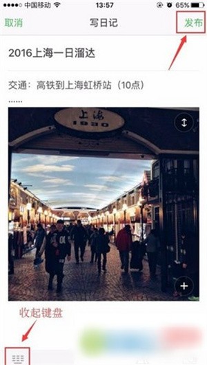 写完内容后,最后点击“发布按钮”发布日记。