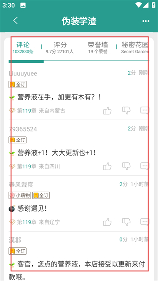 3、在伪装学渣详情页,可查看书籍信息,下滑进入评论区。