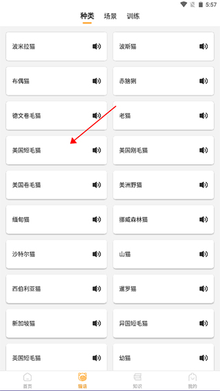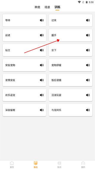 4、点击训练,这里面有很多可以训练猫咪的语音可供用户使用。