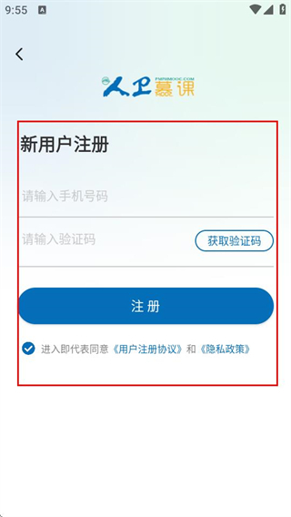 4、在新用户注册页面,输入信息,勾选协议后点击注册,完成账号注册。