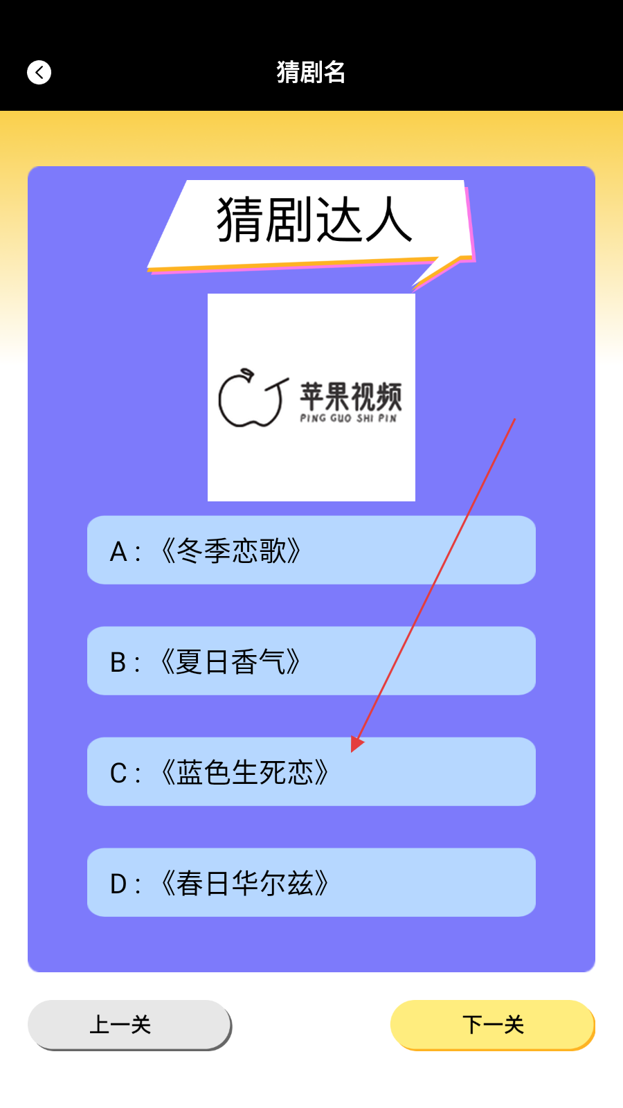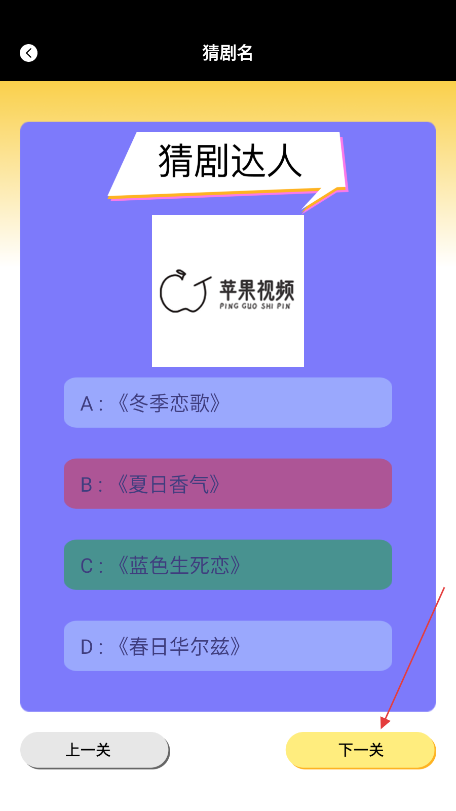 4、完成剧名猜测后,点击【下一关】,即可进入下一关继续猜剧。