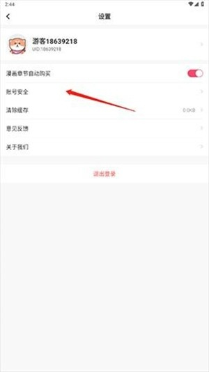 2、点击“账号安全”选项。