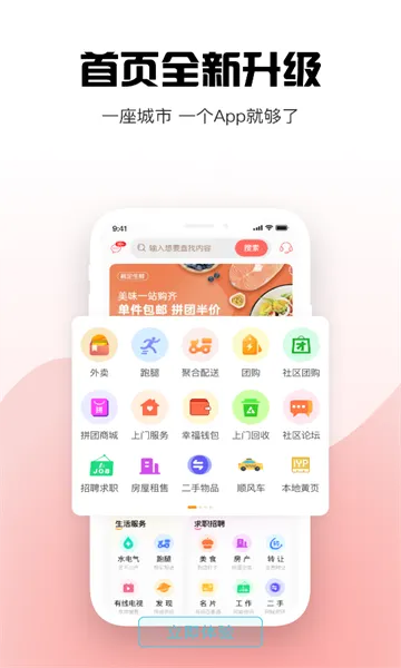综合服务:包含外卖、团购、日用百货、母婴产品以及跑腿服务,能够满足用户的各类需求。