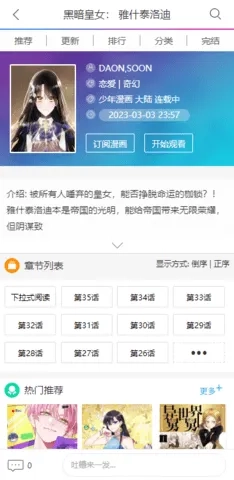 分类清晰:漫画按照题材、风格、地区等分类,用户可以快速找到感兴趣的漫画类型。同时,平台还设有排行榜和热门推荐,帮助用户发现热门漫画。