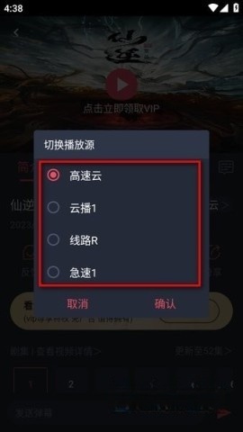2、接着会弹出“切换播放源”的窗口,选择其他播放源后点击“确认”按钮,即可解决播放相关的问题。