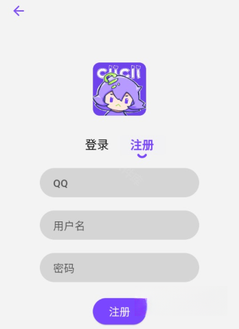 3、切换到“注册”页面,依次填写QQ号、用户名,设置好密码后点击“注册”按钮。