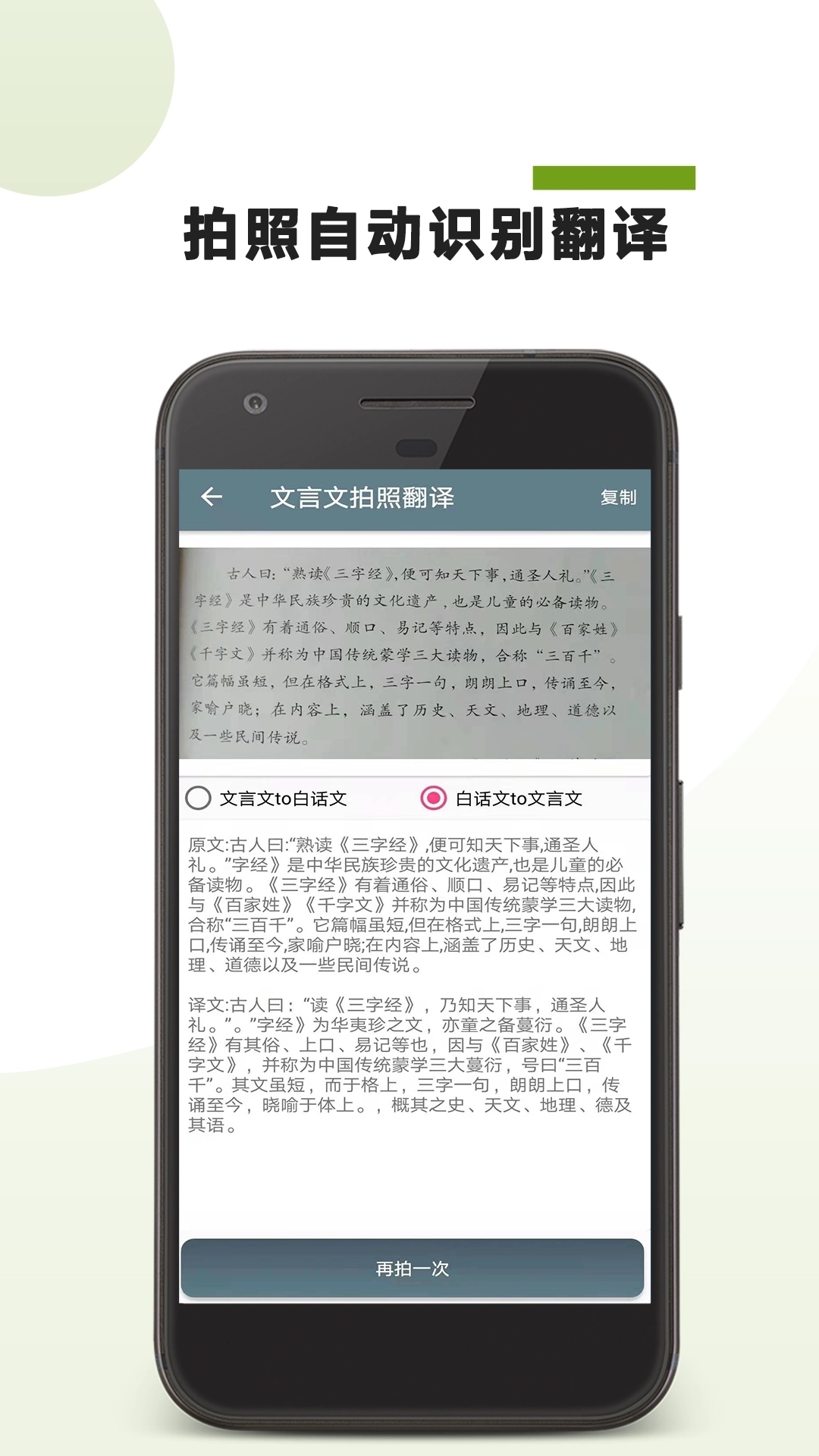 2、文言文Ai翻译机是首款基于人工智能的文言文翻译系统,上至先秦文学,下到明清小文,都可极速翻译