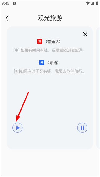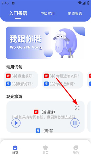 1、在粤语字典app首页,点击观光旅游板块的展开按钮,进入对应的内容详情页面。