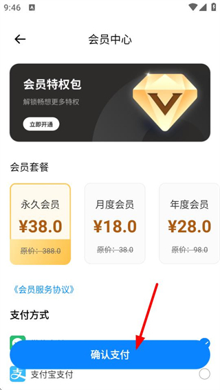 3、在会员中心页面,选择会员套餐后开通会员,即可学习该粤语。