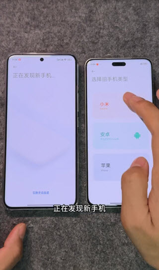 1、新旧手机都需安装小米换机应用,且要处于同一WiFi环境中;之后新手机选择“新”,旧手机选择“旧”。