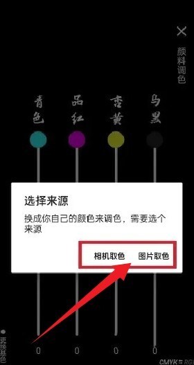 在来源页面点击取色途径按钮,从图片、摄像头或其他方式中快速获取颜色。