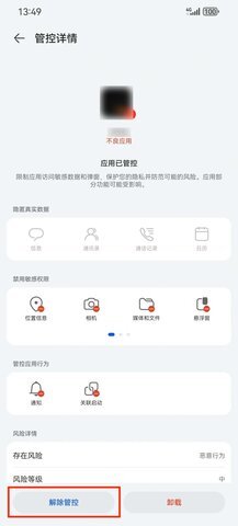 2.点击被管控的应用,点击左下角的“解除管控”