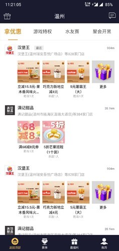 功能三:在特权店集结谁有PK享受商家专属好礼。主要还是优惠卷。