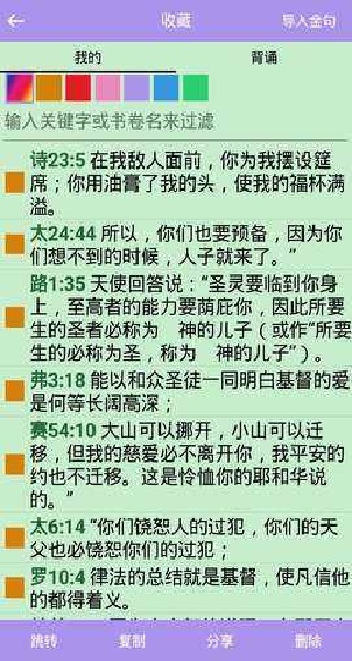 2.设有“关键词检索”与“主题检索”两种模式,其中关键词检索能够精准找到包含特定词汇的经文;主题检索则会依据“救赎”“宽恕”“盼望”等核心主题对经文进行聚合,便于开展系统性的研究。