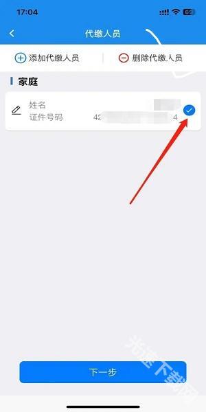 4.代缴的话,就需要点击“添加代缴人员”,录入相关信息,保存后,勾选代缴人,点击“下一步”;