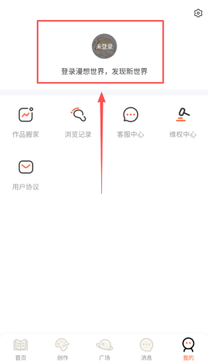 1、安装漫想世界App并完成注册,界面简约明了,使新用户能够快速熟悉各项功能,轻松找到所需工具进入创作状态。