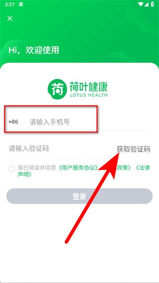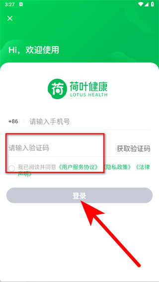 4、将收到的验证码输入到验证码输入框内,勾选后,点击登录,完成注册登录。