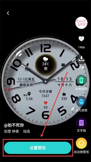 2、进入【创意钟表】详情页后,点击底部的【设置壁纸】按钮,即可启动壁纸设置流程。