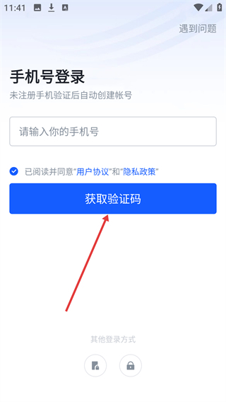 1、进入手机号登录界面后,先填写手机号并勾选同意相关协议,接着点击【获取验证码】按钮,即可启动验证码的发送流程。