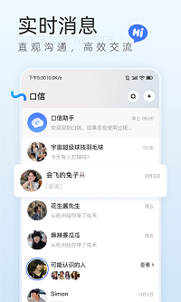 口信是一款功能多样的社交通讯应用。它具备完善的社交通讯能力,用户可以在此与他人实时互动交流,通过好友通讯录能便捷找到常联系的好友,所有信息都真实可靠。智能AI工坊还能协助你高效完成趣味图文创作,欢迎有需要的用户体验使用。