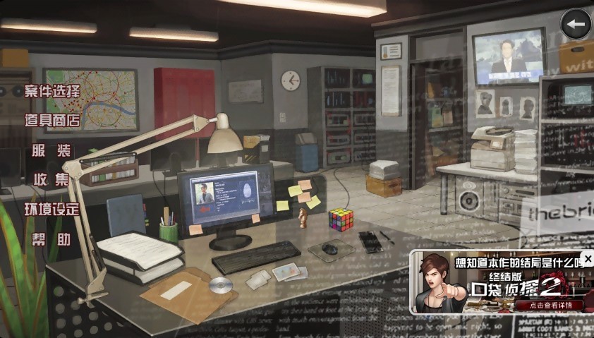 《口袋侦探2》是一款堪称经典的解谜类游戏。这款游戏所讲述的故事是这样的:姜鑫宇警官在追踪秘密组织许普诺斯的过程中,不慎掉入敌人设下的陷阱,致使他失去了所有的同事。为了给同事们报仇雪恨,姜鑫宇毅然选择成为一名私家侦探。此后,他一边调查各类案件,一边沿着蛛丝马迹追踪着许普诺斯的踪迹……然而,在后续的探寻中,他却有了惊人的发现。原来,导致这一切悲剧发生的幕后黑手竟然是……