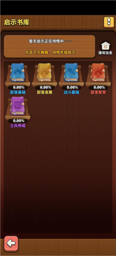 书库内包含《部落基础》《部落发展》《战斗基础》《部落繁荣》《士兵养成》这五本书。玩家点击相应书籍,等待一段时间后便能领悟buff;若不想耗费时间,也能用钻石直接完成领悟,获取对应buff的加成。该加成既能增添玩家战斗乐趣,又能提高获取经验与金币的效率。