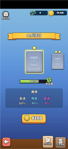 除英雄外,士兵也是玩家进行战斗的一个重要组成部分。在此处,玩家可以给自己的士兵们进行选召和熔炼,提升他们的等级和战斗力,获得更高等级的士兵组。