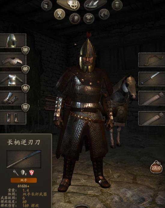 护具主要包含头盔、铠甲、靴子以及手套这四大类别。各类护甲均会使累赘度上升,累赘度会对人和战马的奔跑速度以及跳跃表现产生影响。防护的部位涵盖头部、身体和腿部这三个部分。护甲自身的关键属性为防御力,其作用是降低挥砍类伤害。有部分护甲存在最低力量要求,要是力量未达到对应的标准,便无法穿戴该装备。