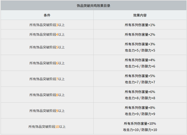 - 饰品共鸣效果分为[突破共鸣]与[等级共鸣]。