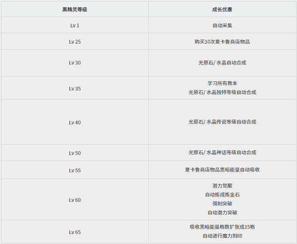 当黑精灵等级提升后,像光原石自动合成、自动突破以及自动采集这类颇为耗费时间的事务,黑精灵都能够代劳哦!