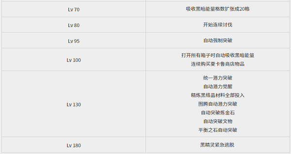 黑精灵各等级开启功能