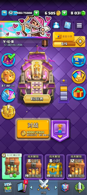 2、在对战界面点击“对战”搜索对手,匹配系统会为玩家搜寻与玩家奖杯数相近的其他玩家,玩家拥有的卡牌数等级并不会影响对战匹配。