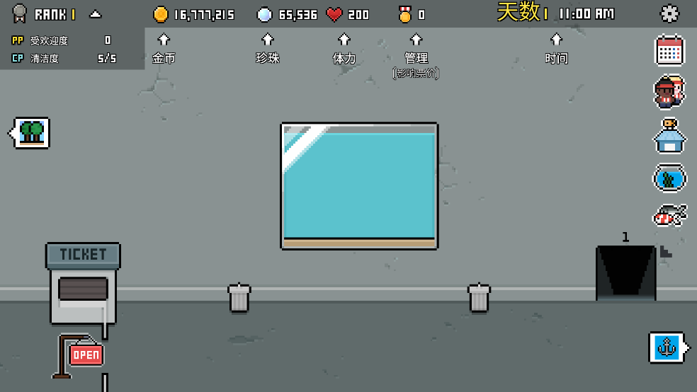 5、除收取门票外,还需定期清理水族馆,并收集客人头上的爱心以提升好感度;