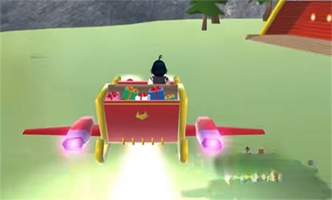 在圣诞小屋的门口,雪橇能够腾空而起,翱翔天际,与此同时,大量的圣诞礼物纷纷洒落,为场景增添了不少趣味。