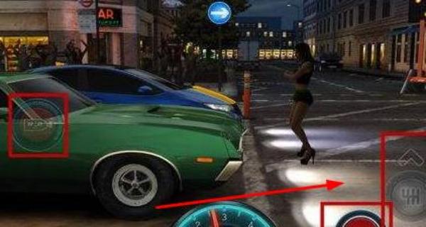 1、进入游戏后在电影角色车库中选择初始赛车,点击剧情模式进入首关,通过虚拟按键操控赛车起步与漂移。