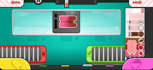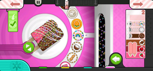 游戏的核心玩法是制作冰棍。根据顾客的需求,选择不同的冰棍配方,添加各种配料,如水果、巧克力酱、坚果等。点击屏幕上的配料图标,将配料添加到冰棍上,完成制作。