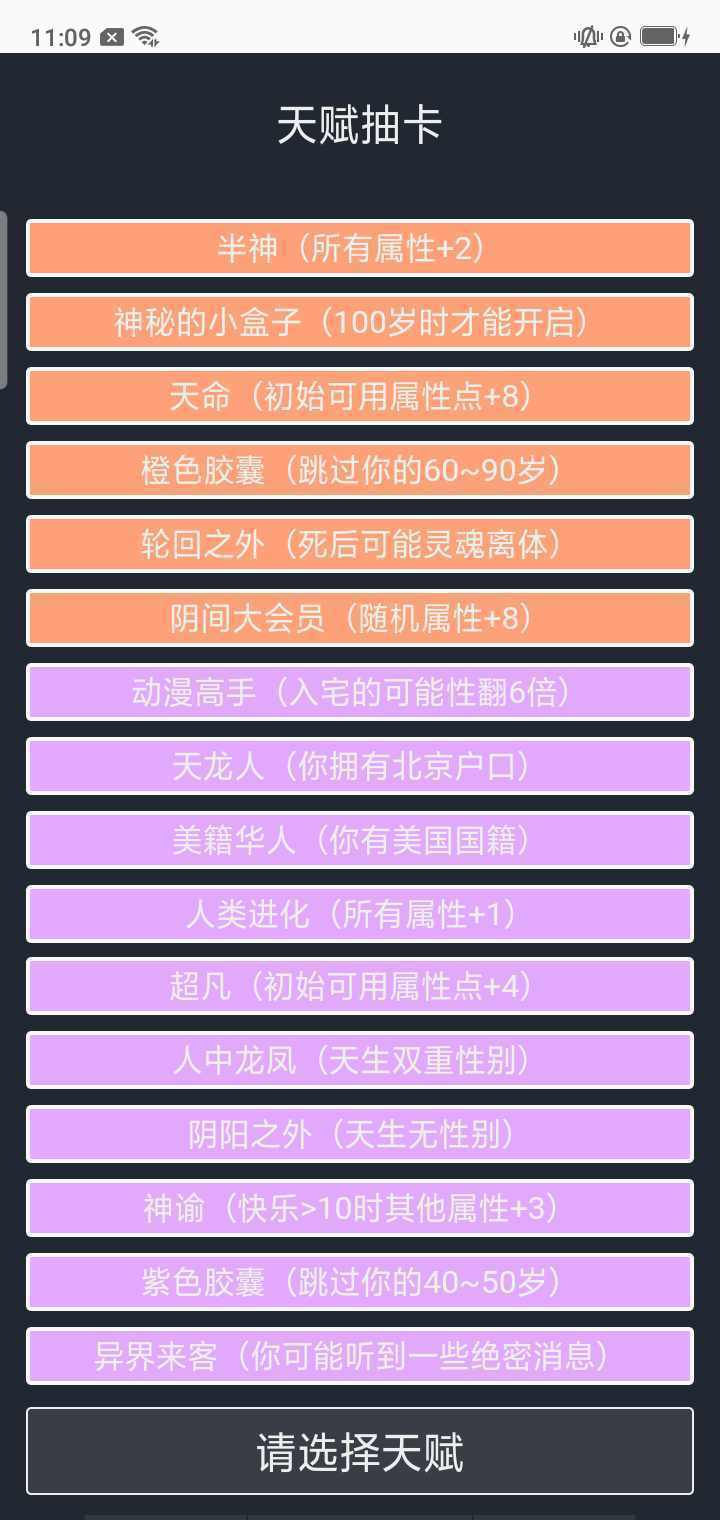 性格特质:性格特质会影响你在游戏中的各种行为和事件。例如,“聪明”可以提高学习效率,而“坚韧”则能增加生命值和抗压能力。
